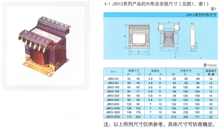 JBK系列機(jī)床控制變壓器是屬于JBK系列變壓器,適用于50-60HZ的交流電路中,作為機(jī)床和機(jī)械設(shè)備中一般電器的控制電源、局部 照明及指示燈電源。